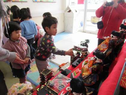豆まきが終わったかと思うと、次はひな祭りの準備。玄関にみんなでお雛様を飾りました。一年ぶりの再会。「やっぱりお雛様ってかわいいね」「これってどこに飾るんだったかな」と話をしながら飾り、春の訪れを待ち遠しく思いました。