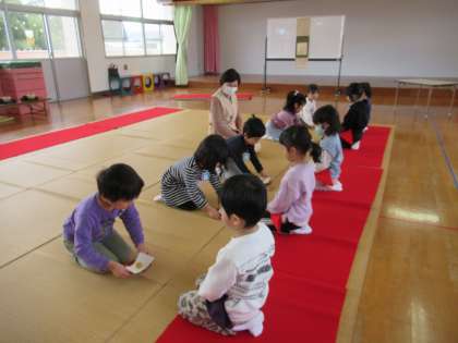 来週のばら組親子茶会に向けて、今日は予行練習も兼ねて本番と同じ流れで作法を行いました。挨拶の言葉も覚え、今まで習ってきたことを思い返しながらしていました。うさぎ組もお家の方になって一緒に作法をしました。うさぎ組は今年度最後のお茶教室になります。坂口先生から「また、ばら組さんになったら一緒にしましょうね」と言われ、嬉しそうに「はい」と返事をしていました。