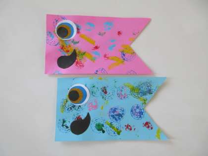 もも・うさぎ組では「自分のこいのぼりがあったらいいね」と話し、こいのぼりをつくることにしました。