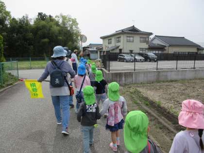 今日はみんなで壇ノ山ふれあい公園へ散歩に行きました。昨日の交通安全教室を思い出し、道路を渡るときは「止まる・見る・待つ」の約束を守って安全に歩くことができました。