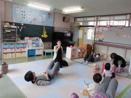 今日は、宮田美里先生を講師にお迎えして「ママのためのヨガ」を行いました。