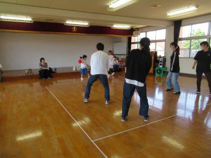 遊戯室でのドッジボールも4回しましたが、大人対子どもが一番盛り上がりました。鋭く投げられるボールにどよめきが起きながら、どちらも勝つことに必死になり、真剣に対戦していました。