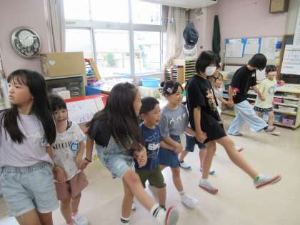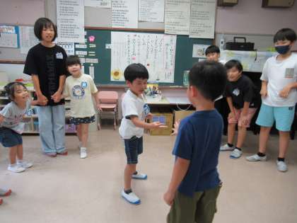 グループごとに分かれて自己紹介をした後、花いちもんめやだるまさんころんだなどのふれ合い遊びをしました。知っている遊びだったのですぐに5年生さんと手をつなぎ、仲間に入って一緒に楽しんでいました。