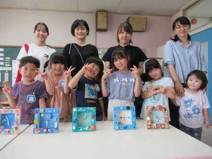登園日も最終日となりました。今日、ばら組は親子活動で「うみのとけいをつくろう」をしました。木のパーツを組み立てて時計をつくり、事前に用意してきた飾りをフレームに付けていきます。それぞれに工夫を凝らした素敵な時計ができあがりました。玄関に飾ってあるので見てくださいね!