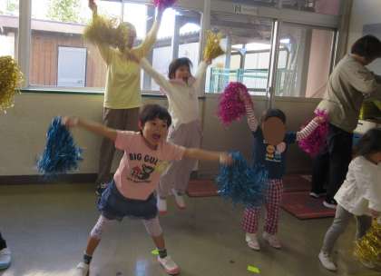 玉入れコーナーでは「カゴを揺らしたら玉が入らないから難しい…」「でも、それが楽しいよ!」と話をしながら、遊ぶ姿が見られました。