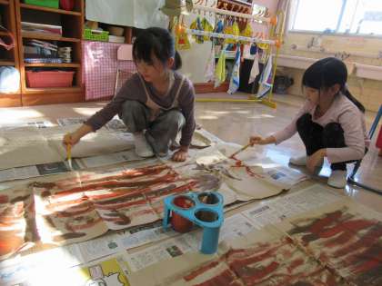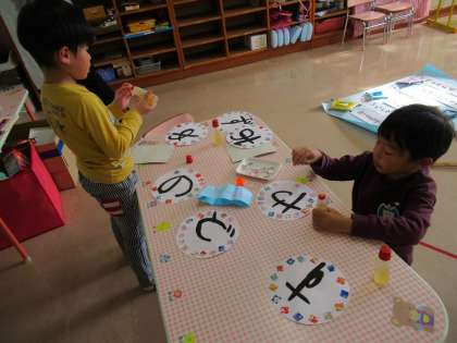 発表会に向けて(ばら組) 公開日 2024/11/15 更新日 2024/11/15 楽しい月岡幼稚園ニュース 11月12日(火) 劇を演じながら「これもあったらいいんじゃない」というアイディアが子どもたちから聞かれ、自分たちで絵の具を塗ったり折り紙を使って切り貼りしたりして必要なものをつくっています。 登園した子から合奏の練習もしています。発表会を楽しみにしている反面、少し心配する気持ちもあり、みんなで話し合いながら気持ちを高めていっています。