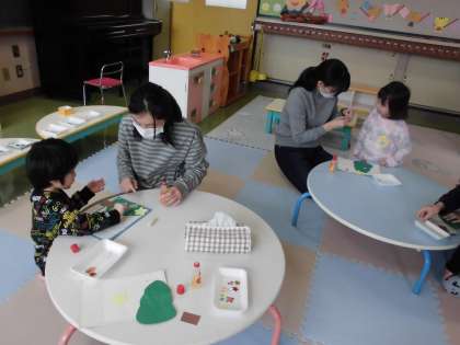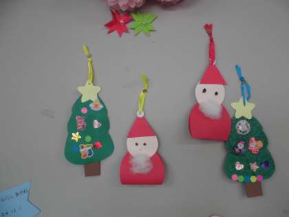 親子サークル 12月13日(金) 公開日 2024/12/13 更新日 2024/12/13 楽しい月岡幼稚園ニュース 今日は、「クリスマス飾りづくり」でママと一緒にサンタさんやクリスマスツリーをつくりました。 折り紙やシールを使い、かわいい飾りが出来上がりましたよ。 次回は、いつもと曜日が違い、12月19日(木)に園児と一緒に「冬の子ども会」に参加します。 9時30分ころまでに幼稚園に来てください。 サンタさんが来てくれるかな?!!