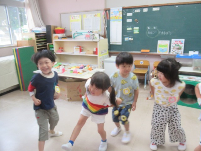 集まりでは座って話を聞いていたり友達と一緒に遊ぶ姿が増えたりと、4月の参観に比べて成長した姿やクラスの雰囲気を感じていただけたのではないかと思います。