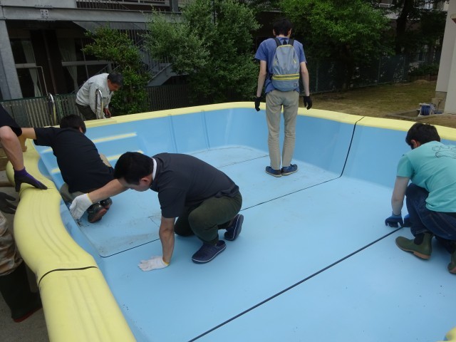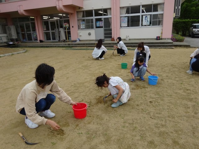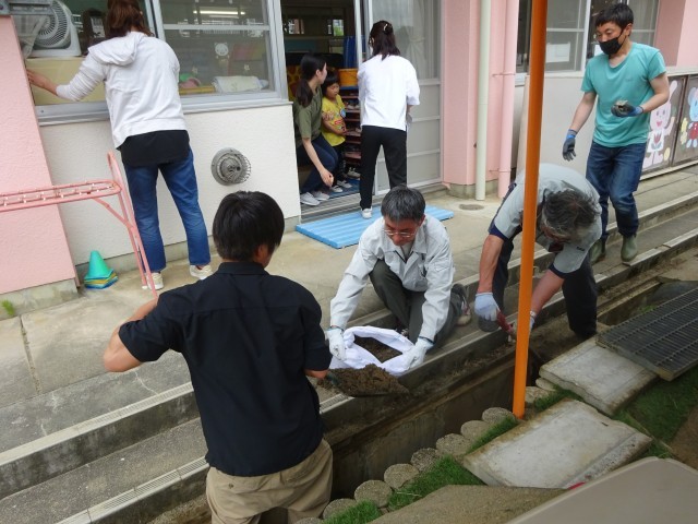 参観後の奉仕活動では、保護者の方にプールの設営、溝掃除、草むしり、窓拭きをしていただきました。おかげ様で幼稚園がピカピカになり、みんなの大好きなプールも始められるようになりました。保護者の皆様、本日は朝早くから保育参観においでいただき、また奉仕活動にもご協力いただきありがとうございました。