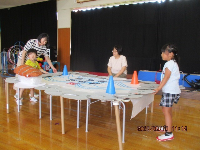 「運動会でも回転寿司ができたらいいな。」そんな声が聞こえてきて、こども達と一緒に準備をしている