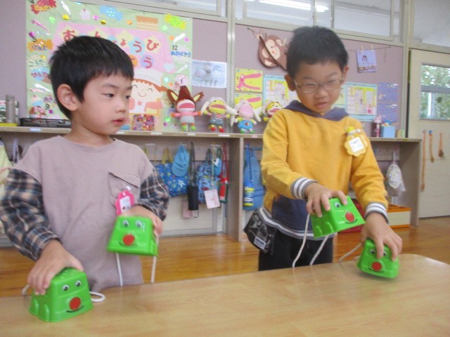 「音が揃うと気持ちがいいね。」「みんなでたたくときれいな音になるね。」の言葉が聞こえてきました。