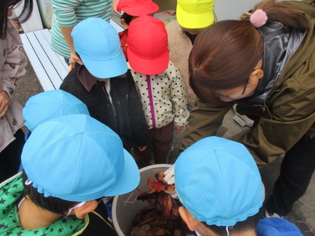 「この前、みんなで集めたはっぱのおふとんに寝かせてあげようよ。」と、おひさまが出ている今日、みんなで