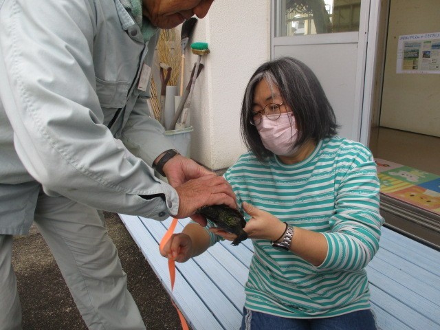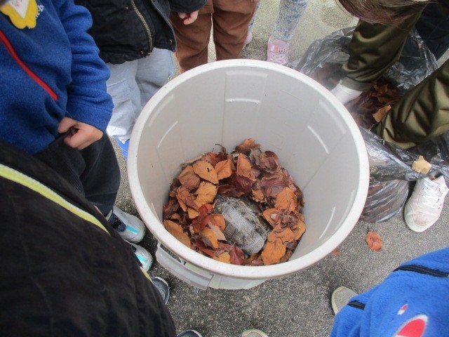 みんなでお世話をしているかめのららちゃん。寒くなっていよいよエサを食べなくなりました。