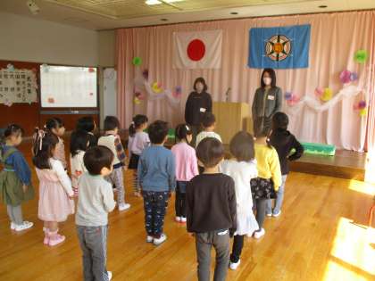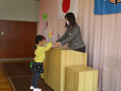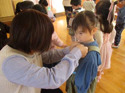 いよいよ新年度が始まりました。着任式では、新しい先生の紹介がありました。自分の担任の先生の顔と名前をよく聞いていた子供たちです。始業式では、園長先生から新しいバッヂをもらいました。登園したときから、新しい名札をつけるのを心待ちにしていた子供たち。ピカピカの名札をじーっと見て、とても嬉しそうでしたよ。もうすぐ仲間入りする新入園児のための歓迎会の練習もしました。歌や踊りの準備をしながら、入園の日を楽しみにしている子供たちです。