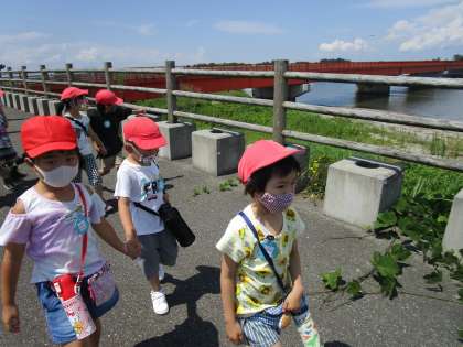 ヒラメの稚魚放流体験に行ってきたよ!PART1 公開日 2021/07/15 更新日 2021/07/15 楽しい水橋幼稚園ニュース 7月15日(木)年長児が水橋フィッシャリーナへヒラメの稚魚放流体験に行ってきました。コミュニティバスを待っていると、パトカーが通り「お巡りさんだ!」と子供たちが手を振ると優しく振り返してくれみんな大喜び!ウキウキ感が高まってバスに乗り込みました。バスを降りて歩き出すと「海のにおいがする」「潮の味!?がする」と海に近付きドキドキ感も高まっていきました。
