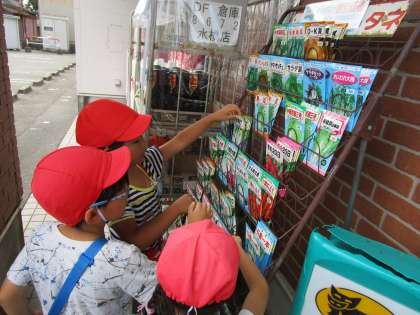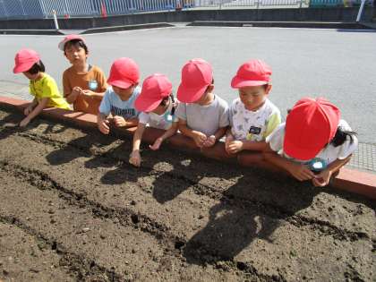 9月29日(水)夏の野菜を植えていた花壇に「冬の野菜を植えよう」とダイコンの種を買いにいきました。すると棚にはいろいろな野菜の種があり「ダイコンだけじゃなくて、他にも植えたい」と子供たち。どれにするか悩んでカブとネギの種を買いました。植えるときは、年中・年少児も一緒に植えました。「早く芽が出ないかな〜」と待ち遠しい子供たちです。