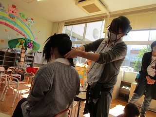 親子サークル(10月18日) 公開日 2021/10/21 更新日 2021/10/21 楽しい水橋幼稚園ニュース 美容師の押田先生に来ていただき、ブラッシングや子供と大人のヘアアレンジを教えてもらいました。 次回は、10月25日(月)です。お越しください!