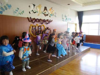 楽しいゲームコーナーの後は、みんなで集まってハロウィンの踊りを踊りました。
