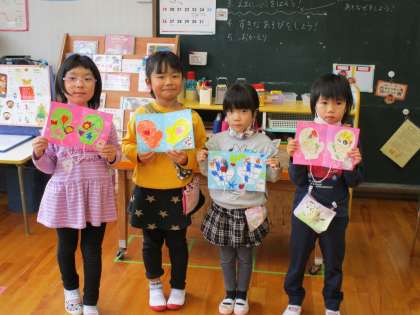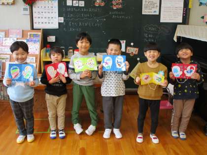 保育参加でかわいいカードを作ったよ! 公開日 2021/12/22 更新日 2021/12/22 楽しい水橋幼稚園ニュース 12月22日(水)保育参加で年長児のお母さんが来てくださり、絵本を読んでから「みんなで手袋をデザインをして、かわいいカードをつくろう!」と楽しい活動が始まりました。クレヨンで手袋に好きな模様を描いてカードに貼ったり、雪だるまに顔を描いたりしてステキなカードになりました。お家に持って帰って誰にプレゼントしようかな…