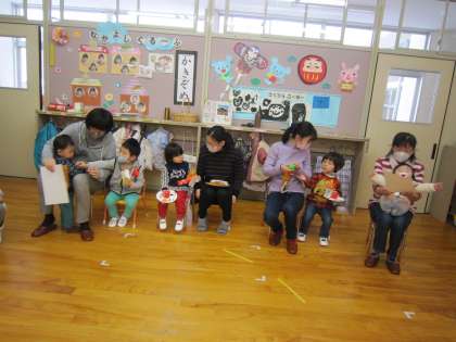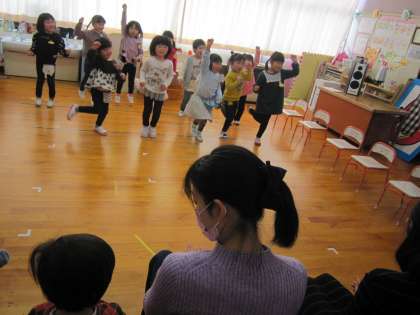 新入園児半日入園楽しかったね! 公開日 2022/01/19 更新日 2022/01/19 楽しい水橋幼稚園ニュース 1月18日(火) いつも親子サークルに来ているお友達なので、ニコニコ笑顔で内履きも自分ではいて、ママよりも先に幼稚園に入ってきてくれました。幼稚園に来ることを楽しみにしている様子がうれしかったです! もも・さくら組さんは、4月からもも組になるお友達と遊ぶことを楽しみにし「だるまさんが転んだ」を踊った後「あっぷっぷ!」と変顔で笑わせていました。