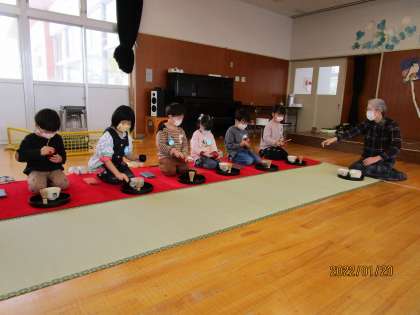 来月24日に保護者の方を招待してひなまつり親子茶会を開きます。子供たちがお菓子をお運びしたり、自分たちで点てたお抹茶をふるまったりします。今日も心を込めておいしいお抹茶を点てられるように練習しました。当日をお楽しみになさってください。