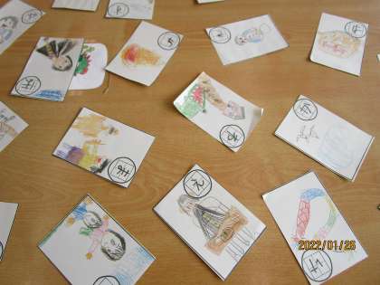 1月26日(水)サンタさんがくれたカルタを何度も楽しんだ子供たち。「自分たちのカルタを作ってみたい」とひまわり組オリジナルのカルタを作って遊びました。個性豊かなカルタになったので、読み札を読むたびに笑い声や「私の描いたカルタだ」「それ、おもしろい!」と本当にカルタ取りを楽しんでいることが伝わってきました。お手つきしても笑って、友達とカルタを取る手が重なっても笑って…笑いが絶えないカルタ取りでした。
