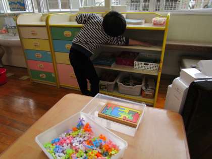 3月17日(木)修了式まであと3日。子供たちとたくさん遊んだ部屋を大掃除しました。自分の棚や玩具や教材の棚等、分担しながらきれいにしていると「お届け物です!」と園長先生がきれいな花を持ってきてくれました。メッセージカードを読んでみると「あっ、前の園長先生たちからだ!」「きれいな花だね」「いいにおい!」とみんな集まってきました。ピンクや黄色のきれいな花たちも子供たちの修了をお祝いして、見守ってくれているようです。