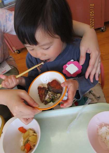 「ホタルイカ、知ってる!キラキラ光るんだよ」「水橋の海にいるんだって」「小さくてかわいいイカだね」「ホタルイカの耳みたいなの、カリカリしておいしい」「イカのお腹から赤いのが出てきた」など、子供たちからいろいろな声が聞かれました。季節の味に触れ、地元の食材に興味をもつきっかけになったようです。