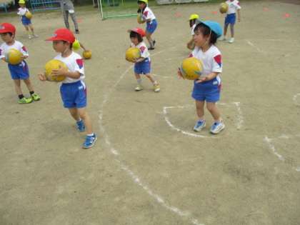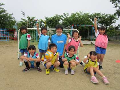 子供たちが楽しみにしていたサッカー教室。コーチに教わりながら、ボールをキャッチしたりドリブルしたりして、十分にボールに触れて遊ぶことができ、子供たちも楽しそうでした。シュートの練習では、ゴールをねらって思い切りボールをキック!子供たちの目は真剣そのものです。最後に行った試合では、一生懸命ボールを追いかける子、ゴールを守り、点を入れられないようにする子等、それぞれの取り組み方でサッカーを楽しんでいました。次のサッカー教室も楽しみにしている子供たちです。