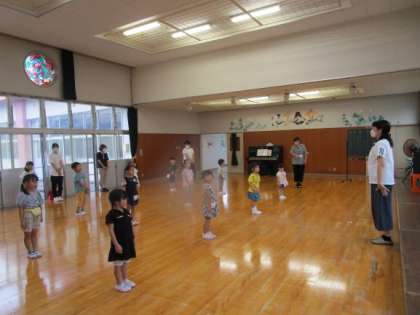 2学期スタート! 公開日 2022/09/01 更新日 2022/09/01 楽しい水橋幼稚園ニュース 9月1日(木) 今日から2学期。始業式では、園長先生のお話の中で早寝・早起きや食事など、日ごろの生活を大切にすることで強い身体になることを確認した子ども達です。また、実習生の紹介式では、手づくりの紹介アイテムを使いながら実習生の好きな食べ物や得意なことを披露する場もあり、早くも子ども達のハートをキャッチしていましたよ。最後に、元気いっぱい体操をして、いい汗をかきました。