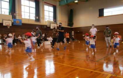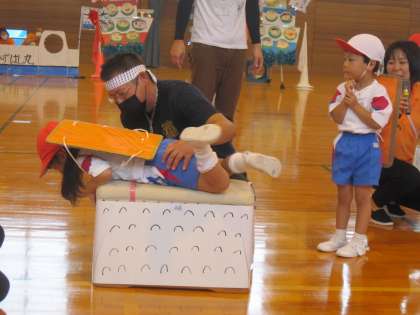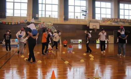 保護者の方と一緒に走ったりおんぶされたり…。とっても嬉しそうな子供たちです。