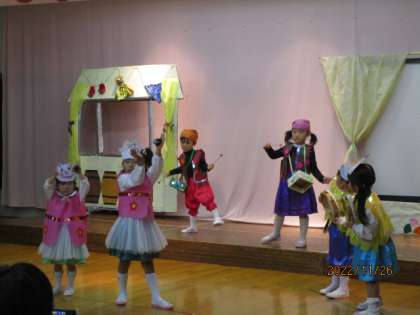 生活発表会2 公開日 2022/11/26 更新日 2022/11/26 楽しい水橋幼稚園ニュース 3・4歳児の劇遊び「ブレーメンの音楽隊」では、ロバ、ネコ、泥棒役を6人で演じました。ちょっぴり恥ずかしそうにしながらも愛嬌たっぷりの3歳児。4歳児は、一人だけで話す台詞がたくさんある中、3歳児を優しくリードしながら演じていました。