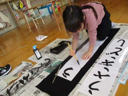 書初めをしたよ 公開日 2023/01/12 更新日 2023/01/12 楽しい水橋幼稚園ニュース 1月11日(水) みんなで書初めをしました。もも組はうさぎの絵、さくら組は自分の名前、ひまわり組はうさぎどしと書きました。習字の筆を持ち、墨をつけ、心を落ち着けて丁寧に書こうとしていた子供たち。「字が上手になりますように」「楽しい絵をかけますように」と一人一人がしっかり願いを込めていましたよ。
