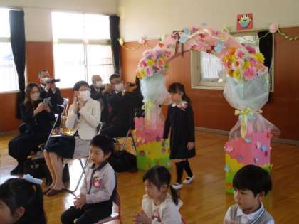 修了式1 公開日 2023/03/20 更新日 2023/03/20 楽しい水橋幼稚園ニュース 3月20日(月) 今日、8人の年長児が幼稚園を巣立っていきました。式場には明るい日差しが差し込み、ご来賓や保護者の方の温かい見守りの中で行われた修了式。入場、修了証書や記念品授与、お別れの言葉や歌、どれも堂々とした姿でした。