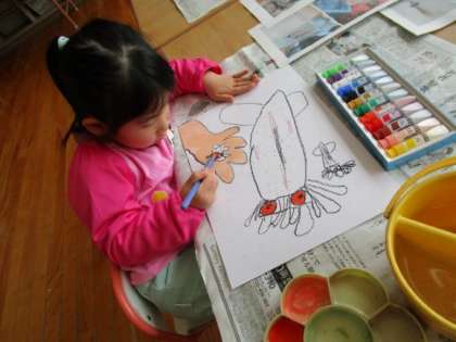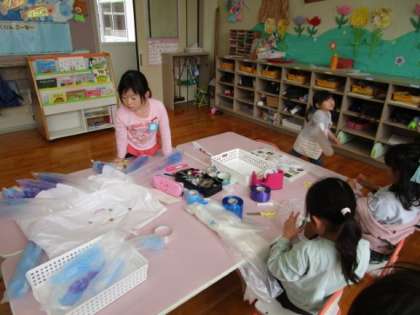 ホタルイカであそぼう 公開日 2023/04/25 更新日 2023/04/25 楽しい水橋幼稚園ニュース 4月25日(火) 先週、ホタルイカ見学会に出かけた5歳児は、ホタルイカにちなんだ遊びができないか思案中。「ホタルイカになって踊ろうよ」「暗い部屋でイカがキラキラ光るところもつくりたい」と、思いを出し合っています。先生と一緒に、必要な材料を選びながら形にしているところです。どんな遊びになっていくのか、楽しみです。