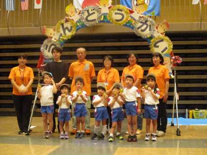 PTAよりピカピカな金メダルをいただき、満面の笑顔を見せてくれた子供たち。きっと、おうちでもたくさん褒めてもらっていることと思います。今日の運動会で、一人一人の子供たちが自分の力をいっぱい発揮してくれたことが、私たち職員もとてもうれしく思います。みんな、よく頑張りました!
