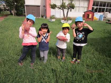 焼き芋かな、お芋の天ぷらかな、それともさつまいもご飯かな・・・子供たちのおいしい笑顔が浮かんでくるようです。