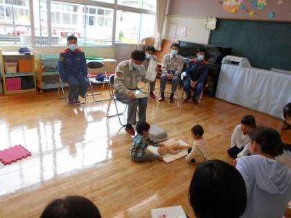 5月から親子サークルが始まりました。今月は、畑にサツマイモの苗を植えたり、水橋消防署の出前講座で救命救急のお話を聞いたりしました。そして今日は、講師の石川先生と幼児期の運動遊びとして、リズム体操やサーキット遊びを楽しみました。でこぼこ道など不安定な所を歩くことで体幹が鍛えられ、時には思い切り力をぶつけたりすることが必要であると教えてもらいました。お母さんたちが一緒に体を使って遊んでくれると、子供たちもさらに頑張っていました。