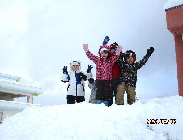 わーい、雪遊び(2月6日) 公開日 2025/02/06 更新日 2025/02/06 楽しい水橋幼稚園ニュース 外は雪で一面真っ白。雪の中を泳いだり、ダイブしたりと大はしゃぎの子どもたち。全身を使って大きな雪山にも登った4・5歳児。尻滑りをしては登り、何度も楽しみました。安全に気をつけながら、冬ならではの遊びが経験できたらと思います。