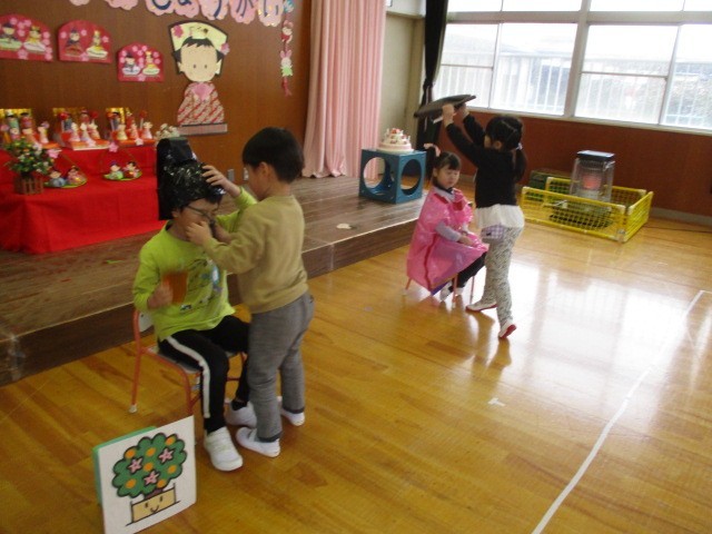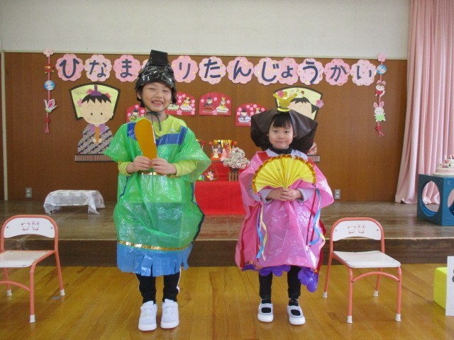 ひなまつり誕生会(3月3日) 公開日 2025/03/04 更新日 2025/03/03 楽しい水橋幼稚園ニュース 今年度最後のお誕生会となりました。今まで5歳児が担当していた司会の仕事も4歳児にバトンタッチ。みんな、もうすぐ一つ大きい組になる心の準備ができているようです。 ひな祭りのゲームでは、リレー式に小物を運び、おだいり様とおひな様の仮装を楽しみました。やっぱり、何を着てもかわいい子どもたちです。