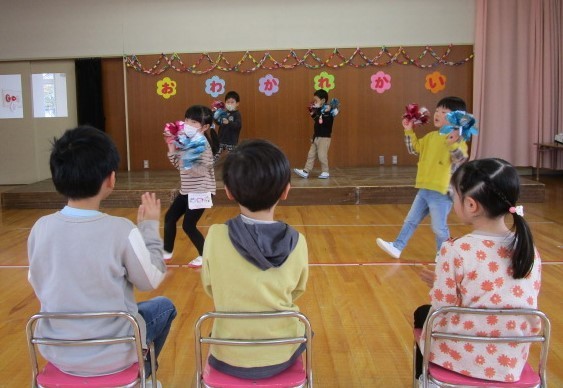 お別れ会1(3月5日) 公開日 2025/03/05 更新日 2025/03/05 楽しい水橋幼稚園ニュース 5歳児に楽しんでもらおうと、3・4歳児が踊りを披露しました。また、みんなで思い出クイズやゲームをして盛り上がりました。