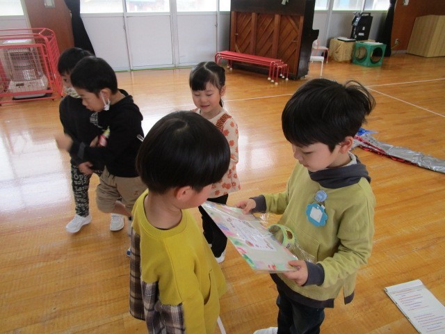 お別れ会2(3月5日) 公開日 2025/03/05 更新日 2025/03/05 楽しい水橋幼稚園ニュース お互いに内緒にしていたプレゼントも、喜んでもらえた様子。お別れ会の進行や準備を頑張ってくれた4歳児のお友達に大きな拍手です!