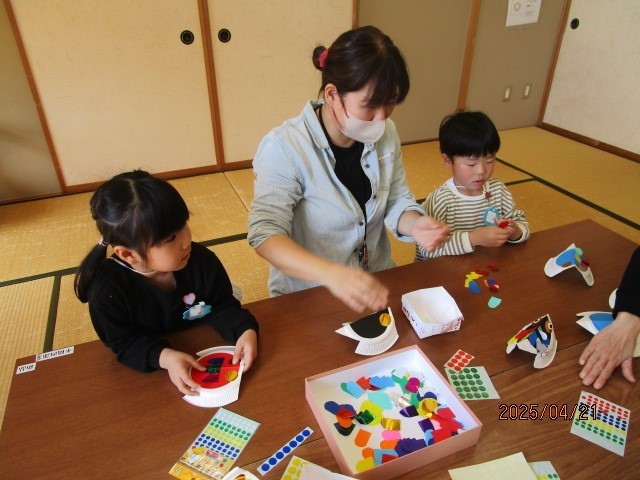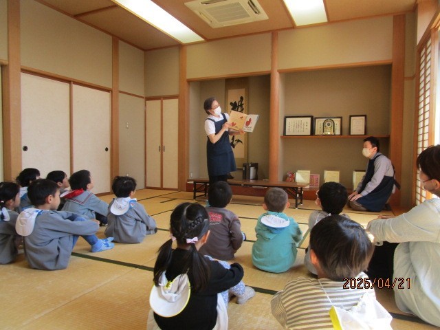 お話ワールド(4月21日) 公開日 2025/04/21 更新日 2025/04/21 楽しい水橋幼稚園ニュース 富山市立図書館水橋分館にいきました。4月23日が「子ども読書の日」ということで、絵本や紙芝居、手遊び、こいのぼりの製作など盛り沢山。今日は、近隣の保育所のお友達とも知り合い、一緒に楽しい時間を過ごすことができました。図書館の絵本コーナーでは、どの本を借りるか時間をかけて選んだ子ども達。お家でたくさん読んで、本に親しんでくださいね。