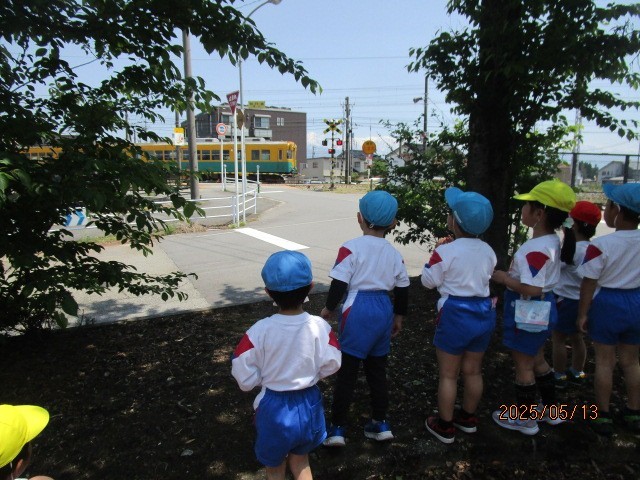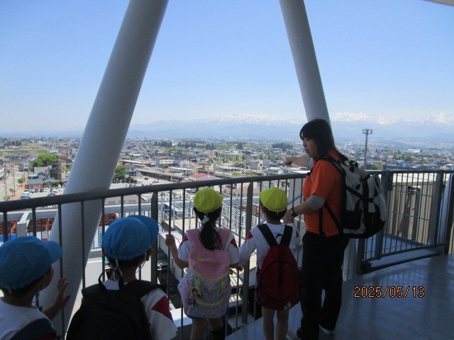 春の遠足2(5月13日) 公開日 2025/05/13 更新日 2025/05/13 楽しい水橋幼稚園ニュース 建物の展望台から海や山の景色を眺めていると「あ、お船がこっちに戻ってくるよ」「お魚、たくさん積んできたかな」と子どもたち。さすが水橋の子の会話です。 近くの公園でお弁当を食べ、遊具で遊びました。途中、踏切の音が鳴ると「もうすぐ電車が通るかも」と集まる子どもたち。今日一日、刺激がいっぱいの様子でした。