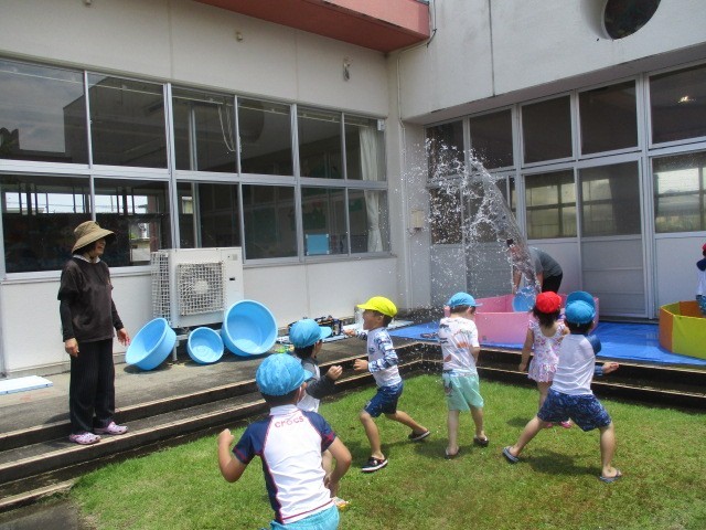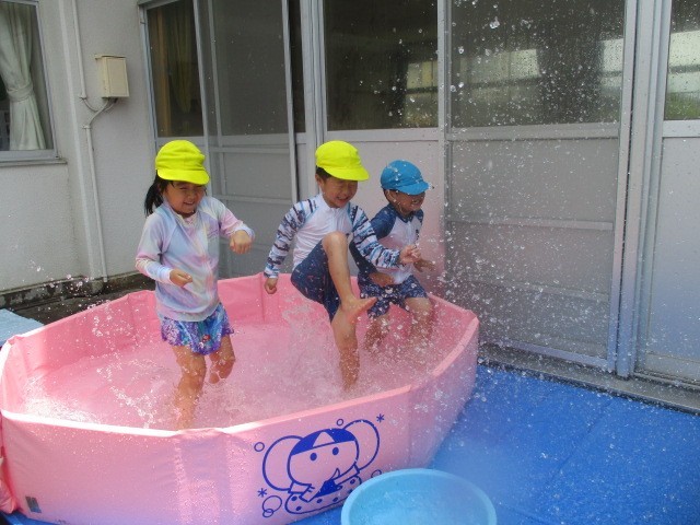朝降っていた雨がやみ、待ちに待った水遊びをしました。