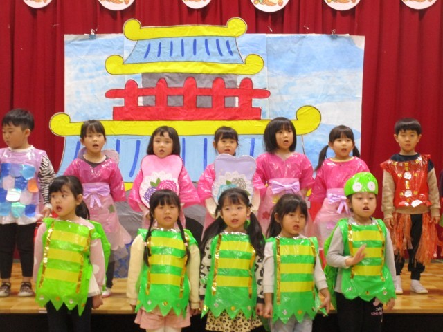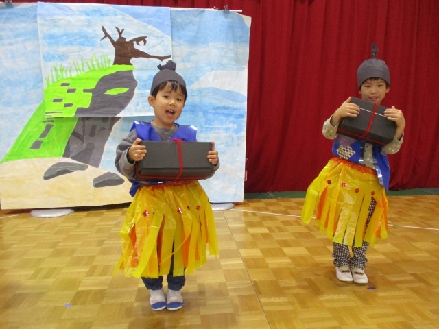 劇遊びを見てもらうのを楽しみにしていた子どもたち。今まで通り、劇遊びも合奏もとっても上手に披露していました。