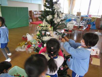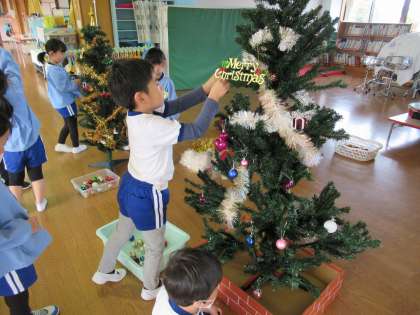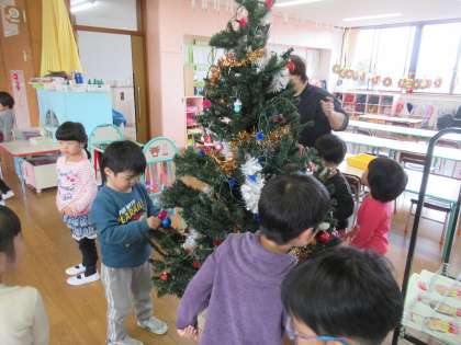 クリスマスツリーを飾りました。(たんぽぽ・つばめ組) 公開日 2020/12/03 更新日 2020/12/03 1日の生活 12月3日(木) 今日はたんぽぽ組とつばめ組の子供たちでクリスマスツリーを飾りました。先日から「もう家にツリー飾ったよ」と話していた子供たち。幼稚園のツリーの飾りつけも「これ可愛いね」「これどこにつけようかな」と嬉しそうに飾っていましたよ。