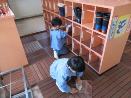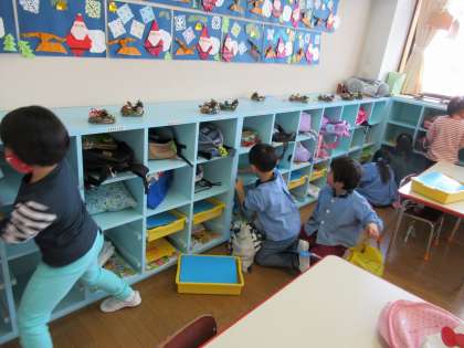 今日はお道具箱や棚の片付けをしたり、下足を拭いたりして掃除しました。お道具箱の中身を自分でいるもの、いらないもの、持って帰るものに分けて片付け、下足はピカピカになるようにきれいに拭きました。身の回りがきれいに片付き、来年は気持ちよく新学期を迎えられそうです。