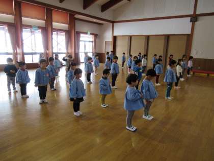 今日は3学期の始業式がありました。たくさん雪が降り、心配していましたが子供たちの元気な顔が見られて安心しました。始業式では、新年の挨拶をし、冬休み中の約束を確認しました。しっかり園長先生のお話を覚えている子がたくさんいましたよ。