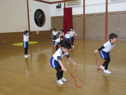 今日の体操教室は縄跳び。長縄を使って、ウサギやカエルで跳び越えたり、自分の縄跳びを使って「回してぴょん」をしたりしました。冬の間はどうしても体が縮こまりがちなので、幼稚園でもしてきたいです。